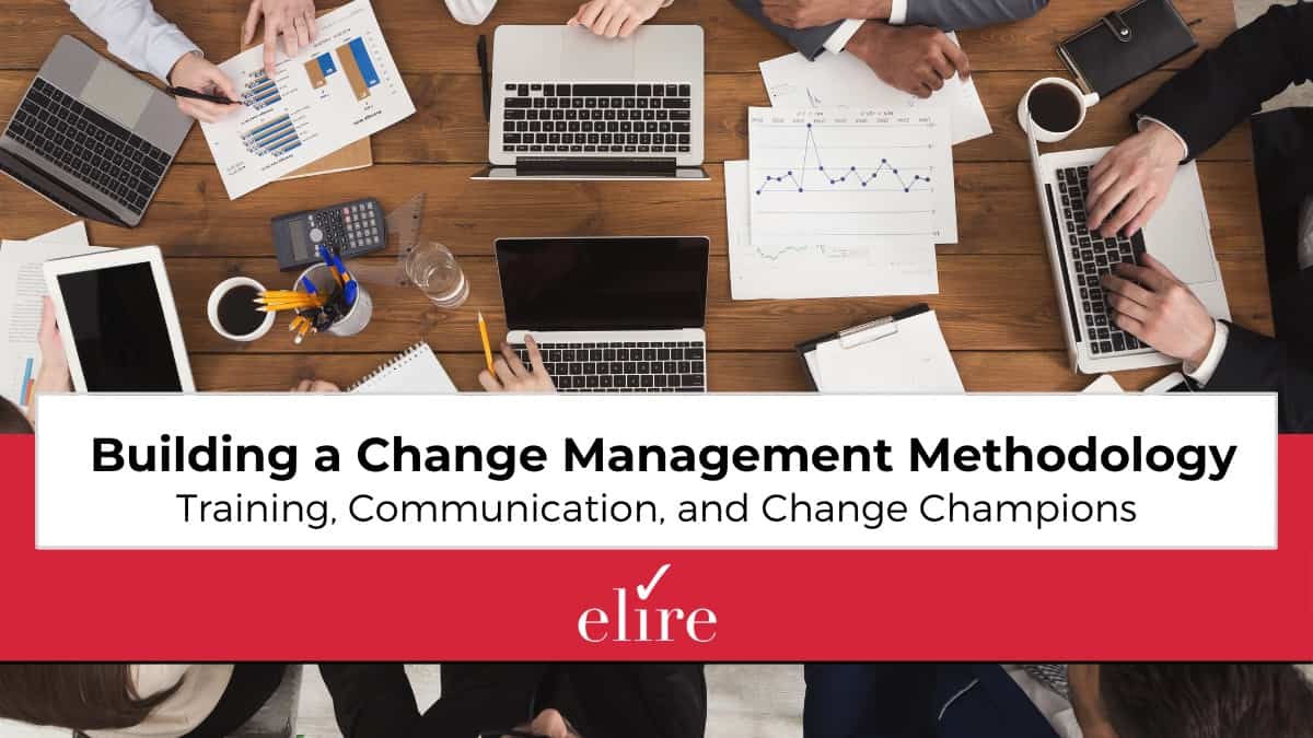 Once teams have established training techniques and transparent communication, they can begin using Elire’s concept of Change Champions to further promote positive organizational change. Change Champions are influential stakeholders within the organization who act as guides during upgrades and implementations. A Change Champion has experience with the process or technology change and understands how the changes benefit end-users. The use of Change Champions can help ease the transition of a project by using their knowledge to embrace change and guide others when issues arise.