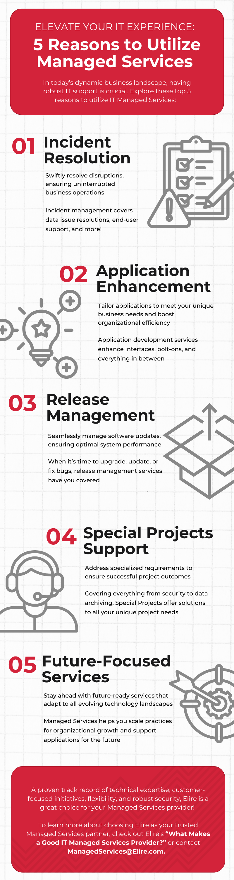 With a proven track record of technical expertise, a customer-focused approach, flexibility, and robust security protocols, Elire is a trustworthy Managed Services partner. To delve deeper into the considerations of choosing Elire for your Managed Services needs, explore Elire’s insightful piece on “What Makes a Good IT Managed Services Provider?” or reach out directly to ManagedServices@elire.com.