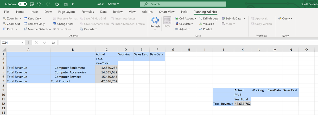 However, the biggest bang for your buck with the Standard behavior is the ability to query multiple databases/cubes on the same sheet! This is huge benefit that has been available with Essbase Ad Hoc for a while in the on-prem world. If you have a multi-cube or multiple application environment you can now query one cube, then highlight an area and point to another cube. This functionality is great if you have one cube with details that you want to compare to a more high-level view, such as a P&L view to Revenue Detail by Product.