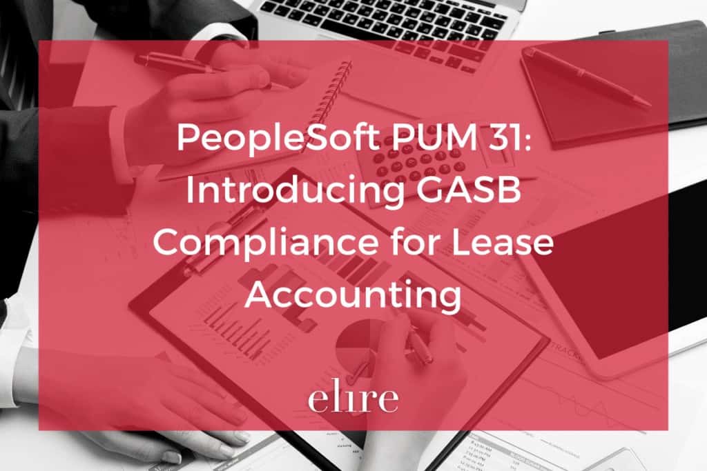 Recently, PeopleSoft PUM FSCM Image 31 became available and includes functionality to ensure Government Accounting Standards Board (GASB) compliance as it relates to Lease Accounting.